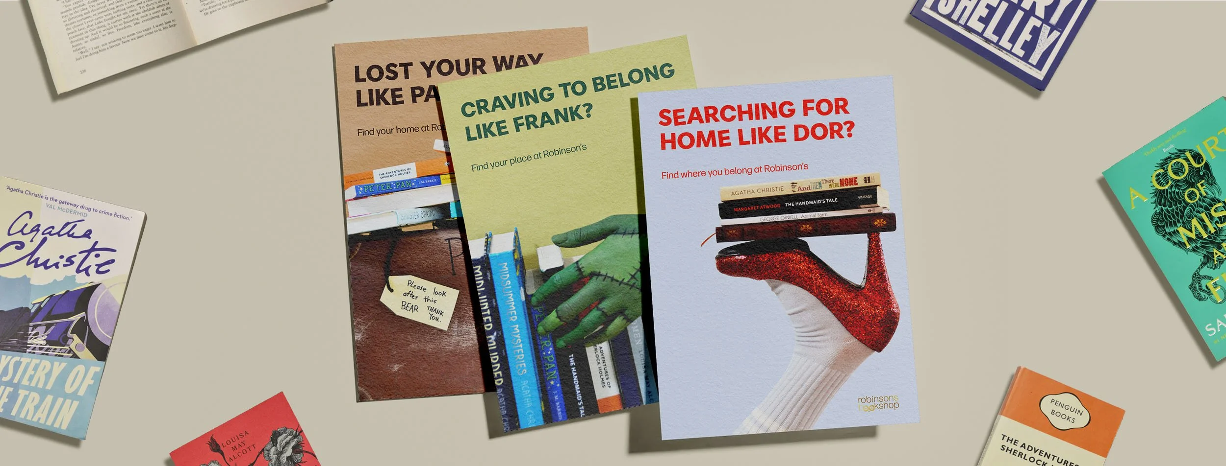 Spec posters for Robinsons Bookshop that bring the brand to life as a warm, welcoming hub for the local community.